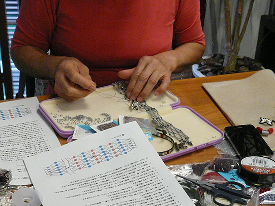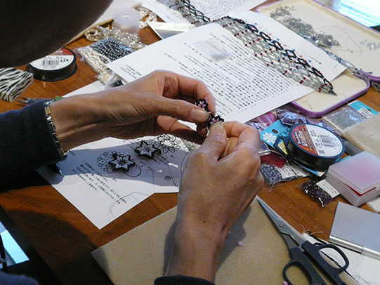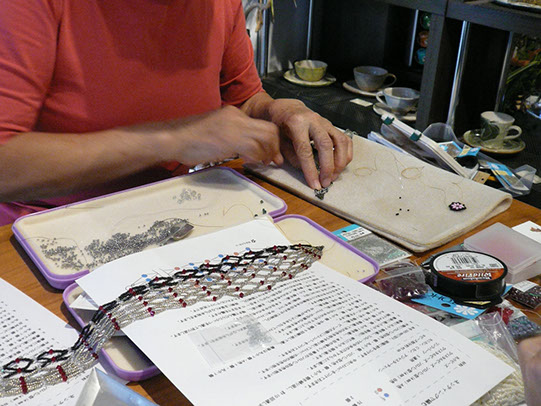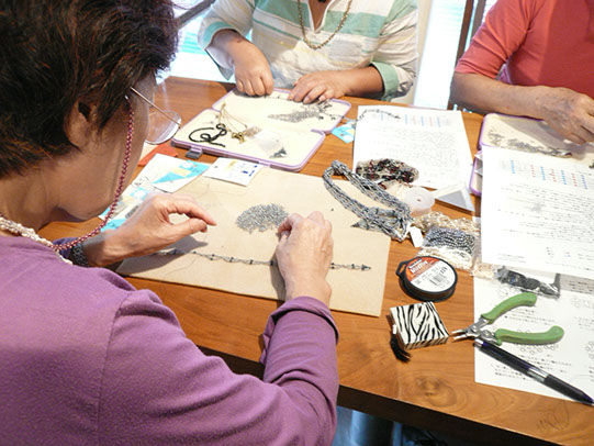 ビーズを使って、アクセサリーなどを中心に制作している講座です。 組み紐、ビーズクロッシェ、ビースステッチなど様々な技法に対応しております。 講師はビーズの輸入販売も行っているので、珍しいチェコビーズなどを購入することができます